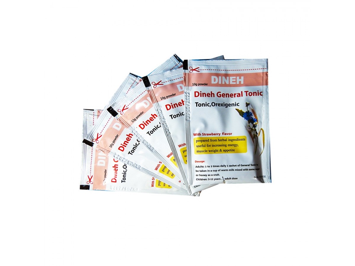 Each pack contains 20 sachets of Dineh General Tonic in three different flavors.