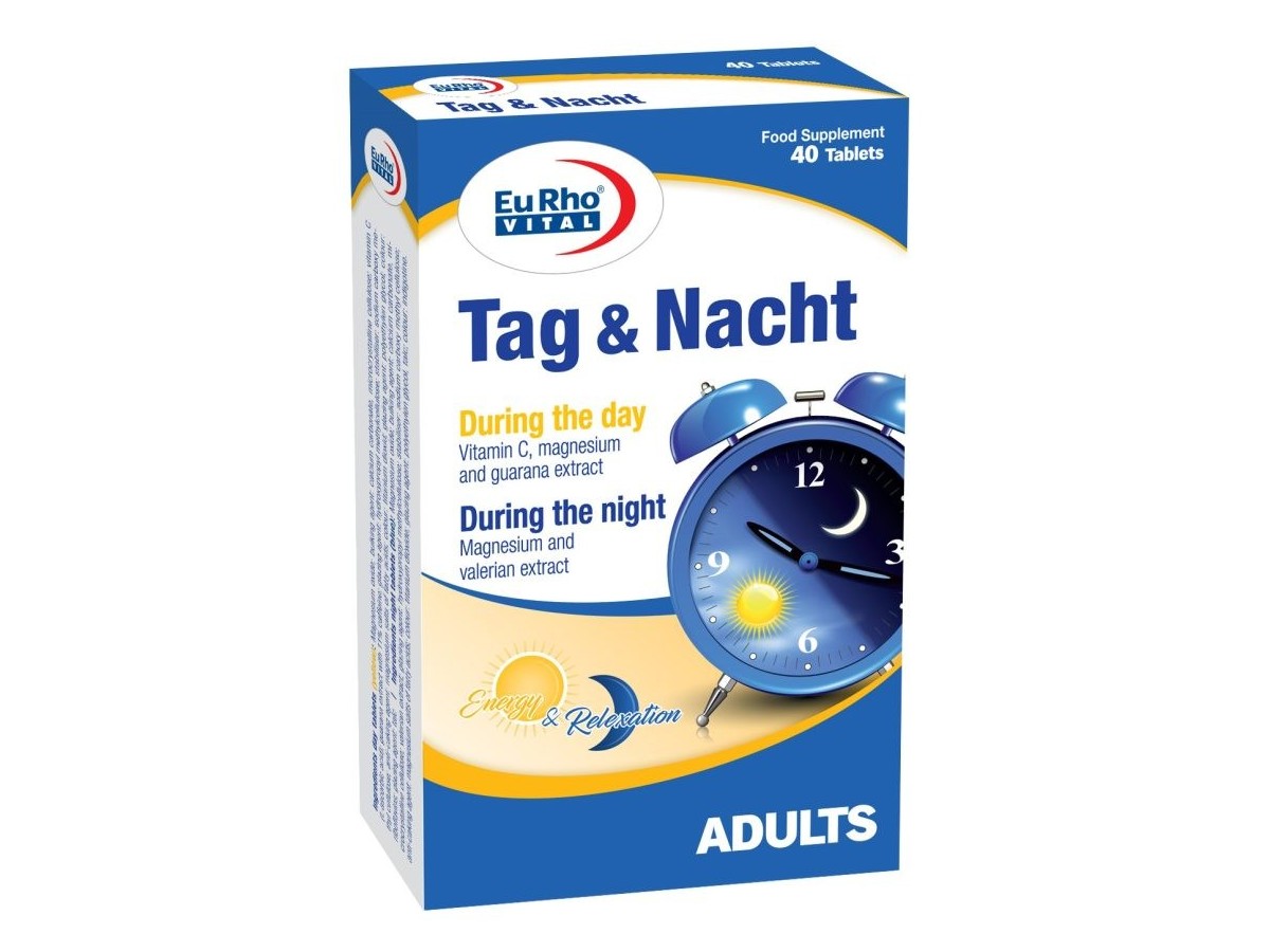 Introducing EuRho vital Tag&Nacht tablets, your perfect companion for a balanced and energized lifestyle. Packed with essential nutrients like vitamin C, magnesium, and beneficial plant extracts, these food supplements provide a boost of vitality during the day and promote relaxation at night.