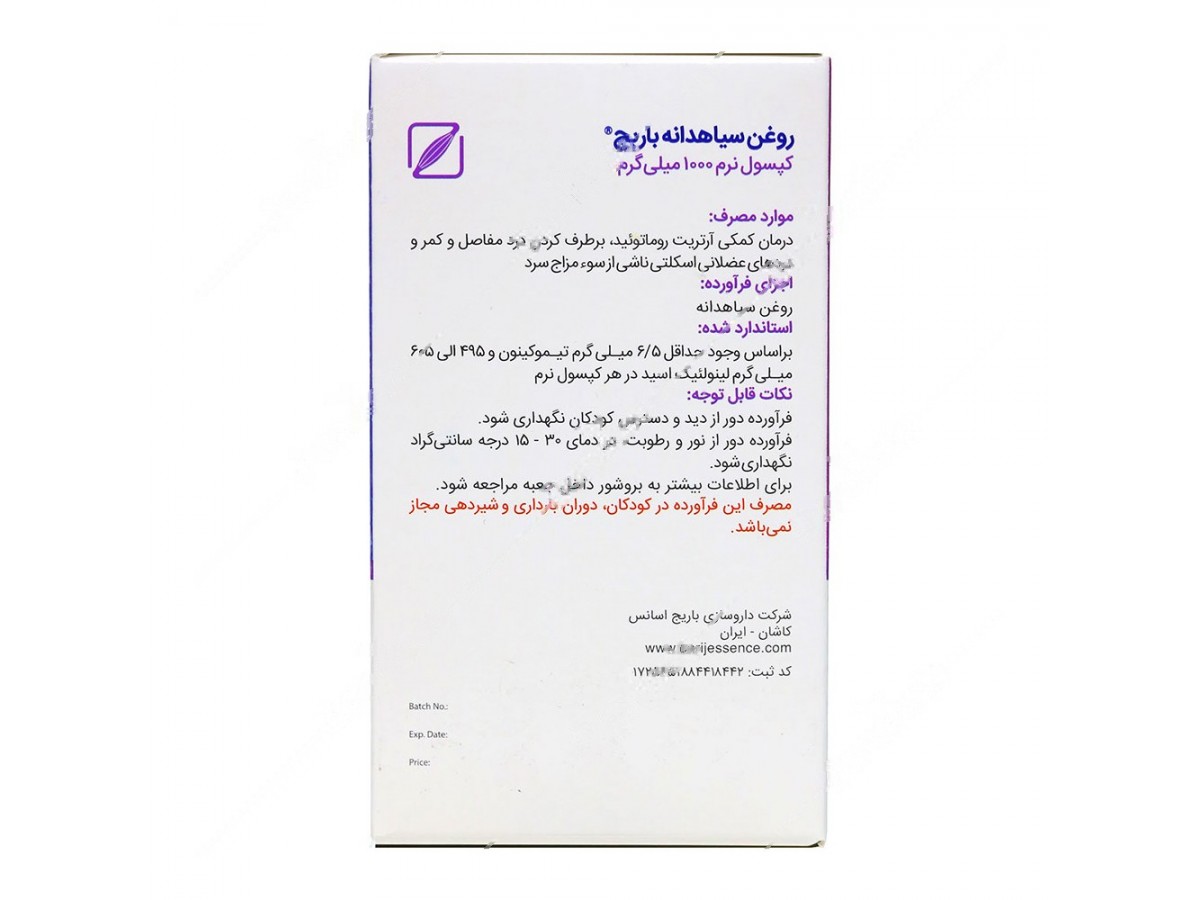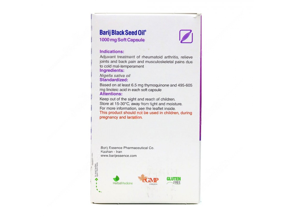 Standardized based on the presence of at least 6.5 mg thymoquinone and 495 to 605 mg linoleic acid per soft capsule.