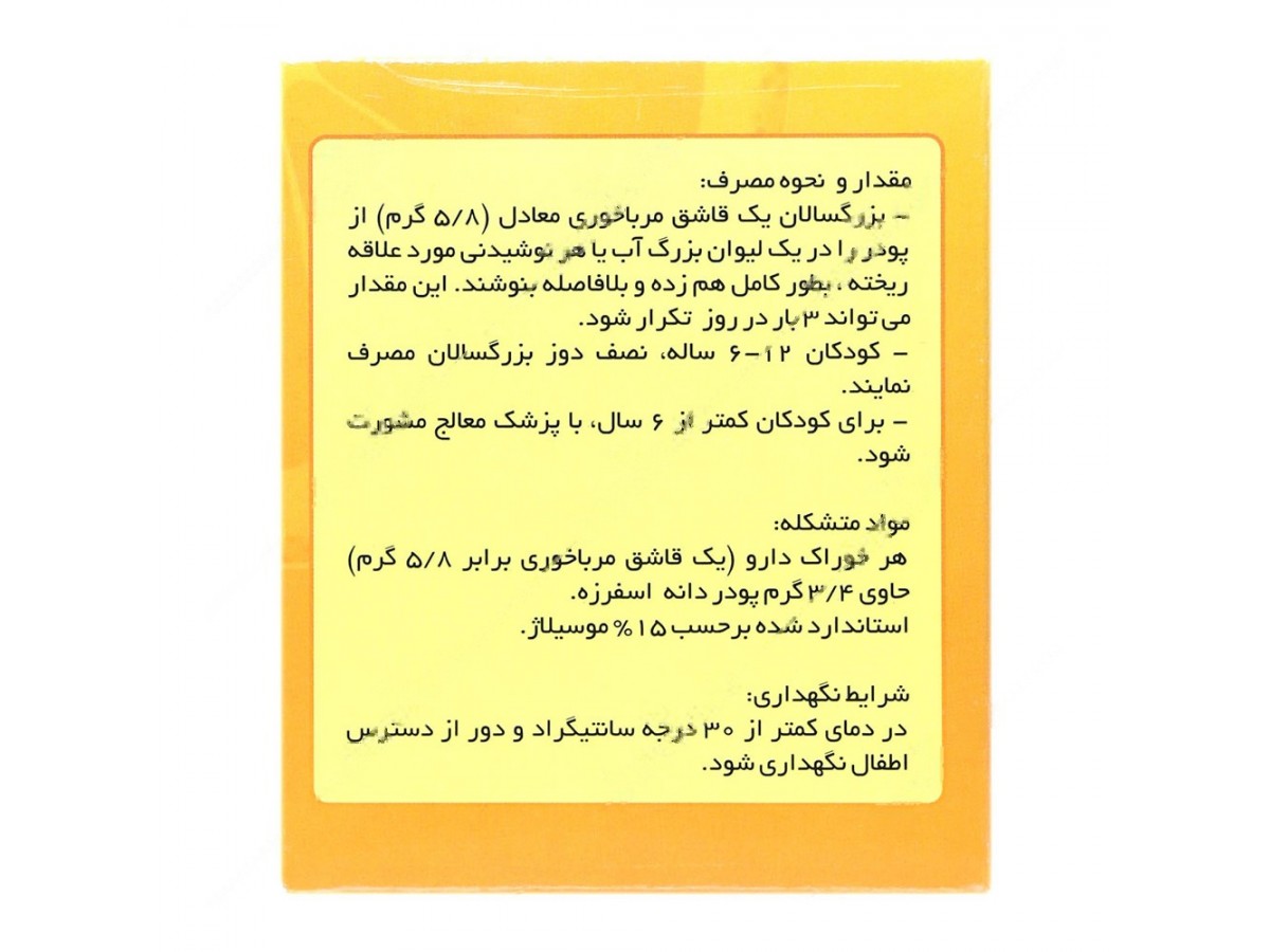 Each serving of medicine (one tablespoon of jam equals 5.8 grams) contains 3.4 grams of Plantag psyllium seed powder
