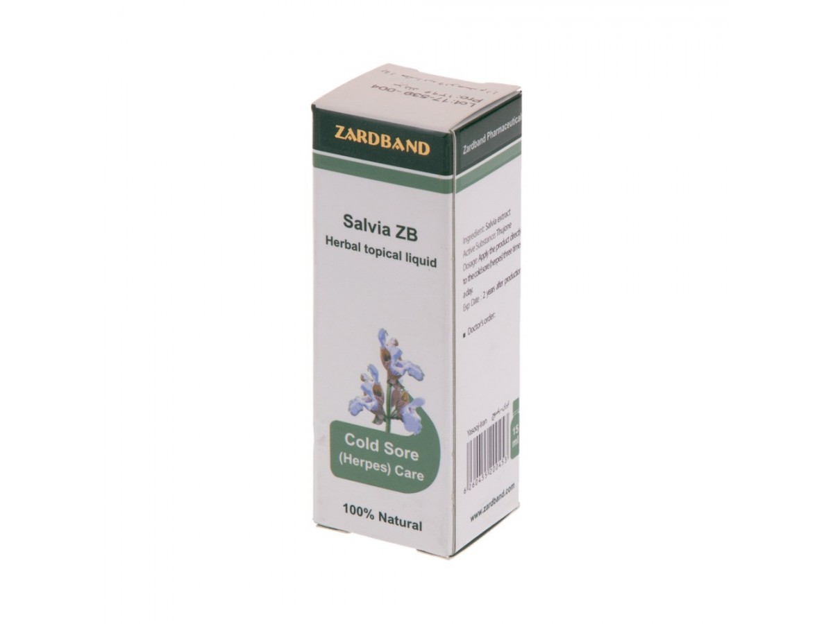 Herbal topical liquid for cold sore with Salvia extract and Thujone used as a complimentary product only and not to cure, prevent or diagnose illness.